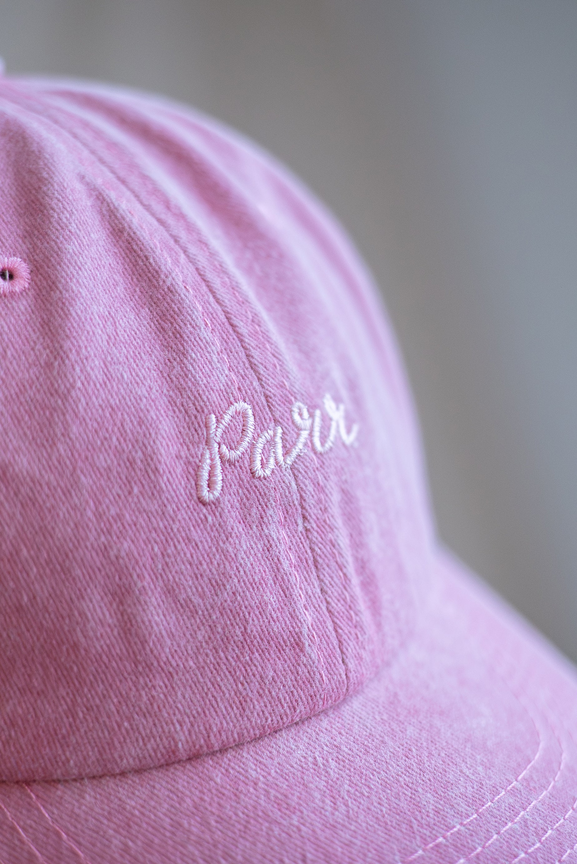 Gorra tipo "dad cap" en acabado pre lavado, con parche bordado.