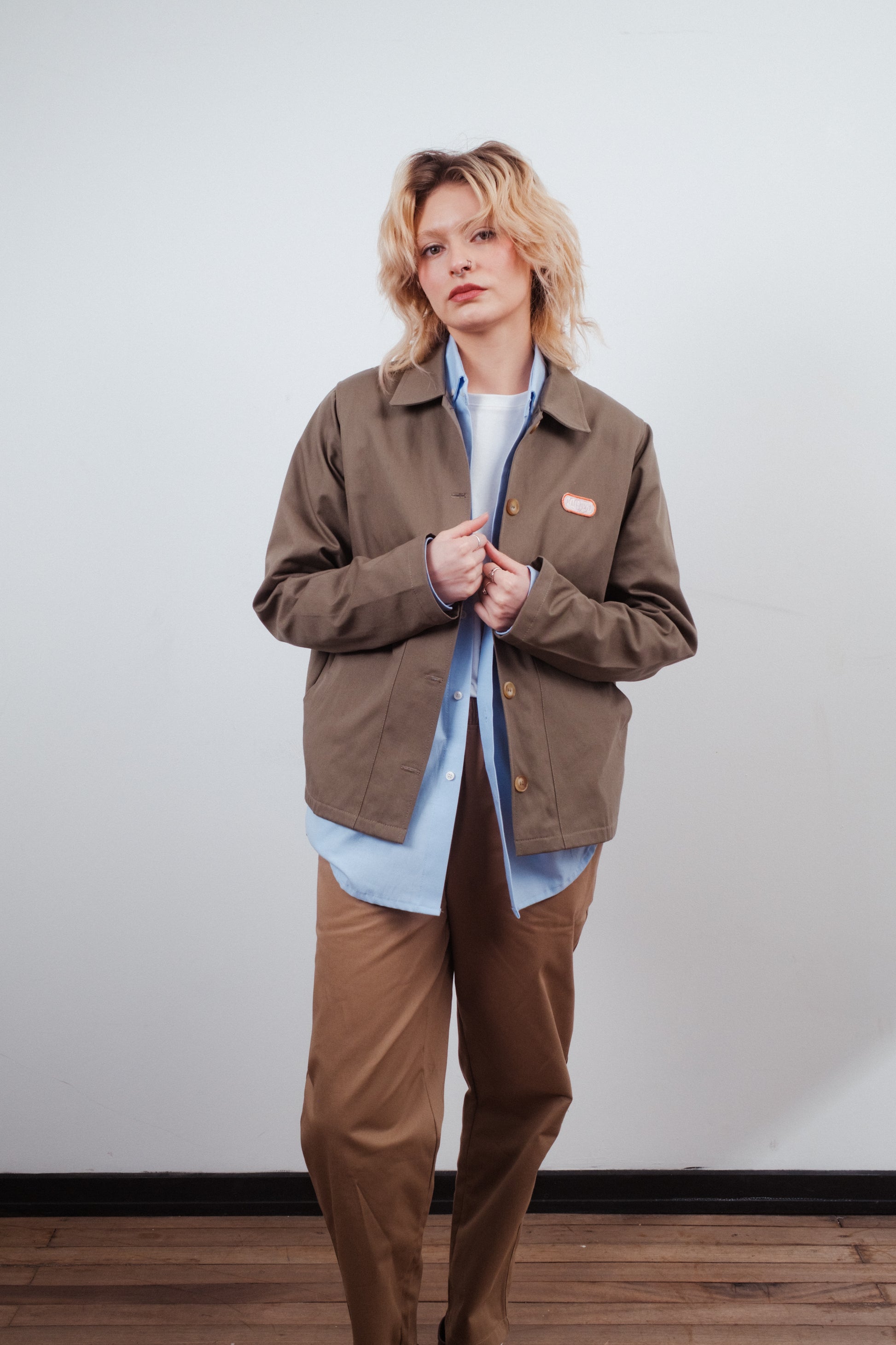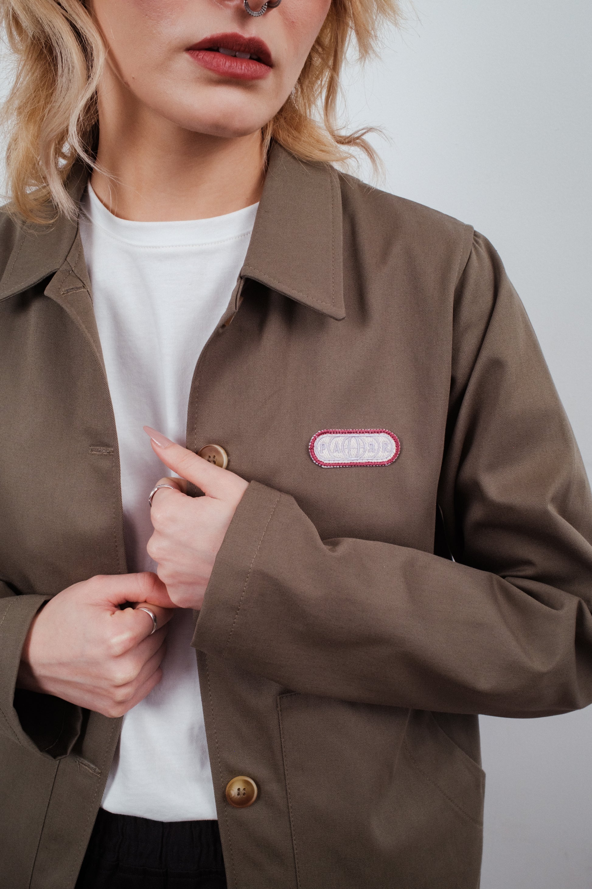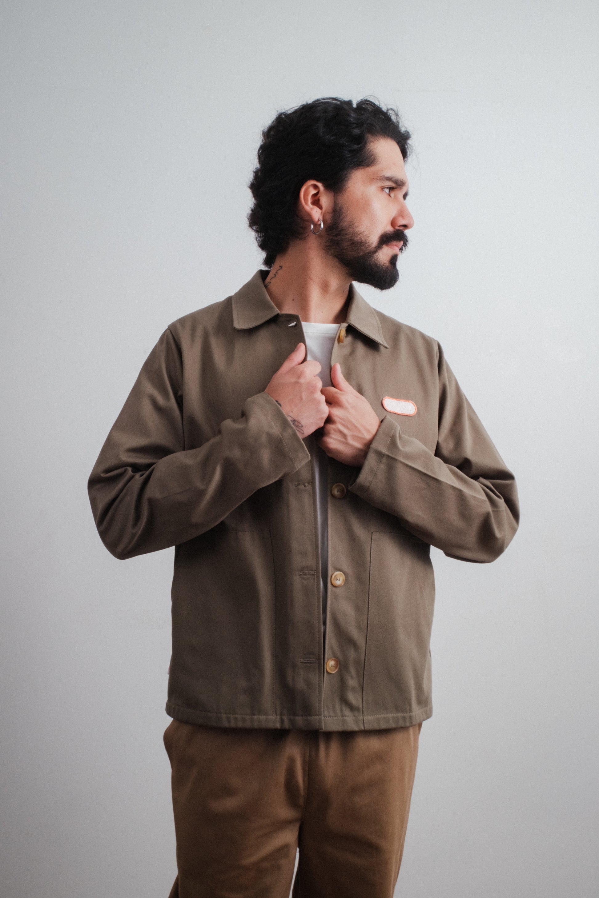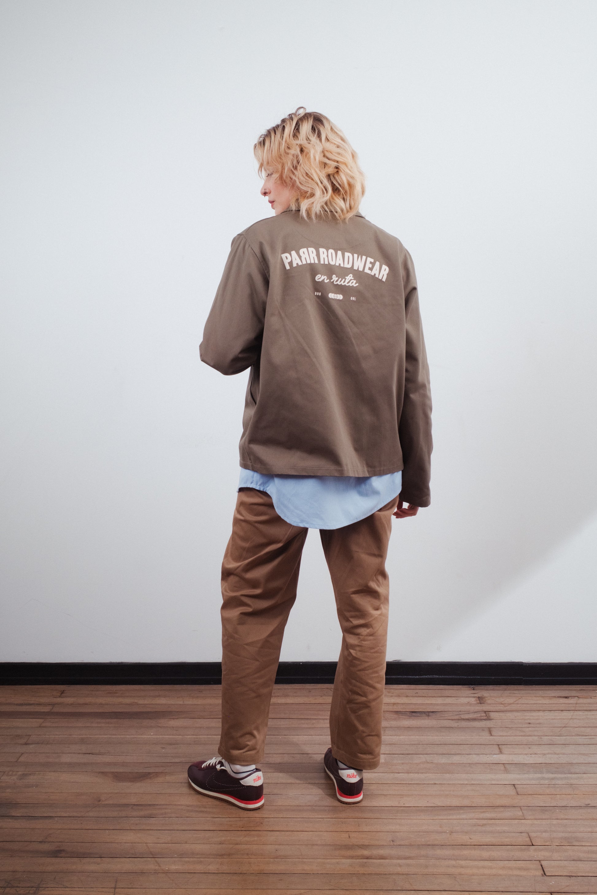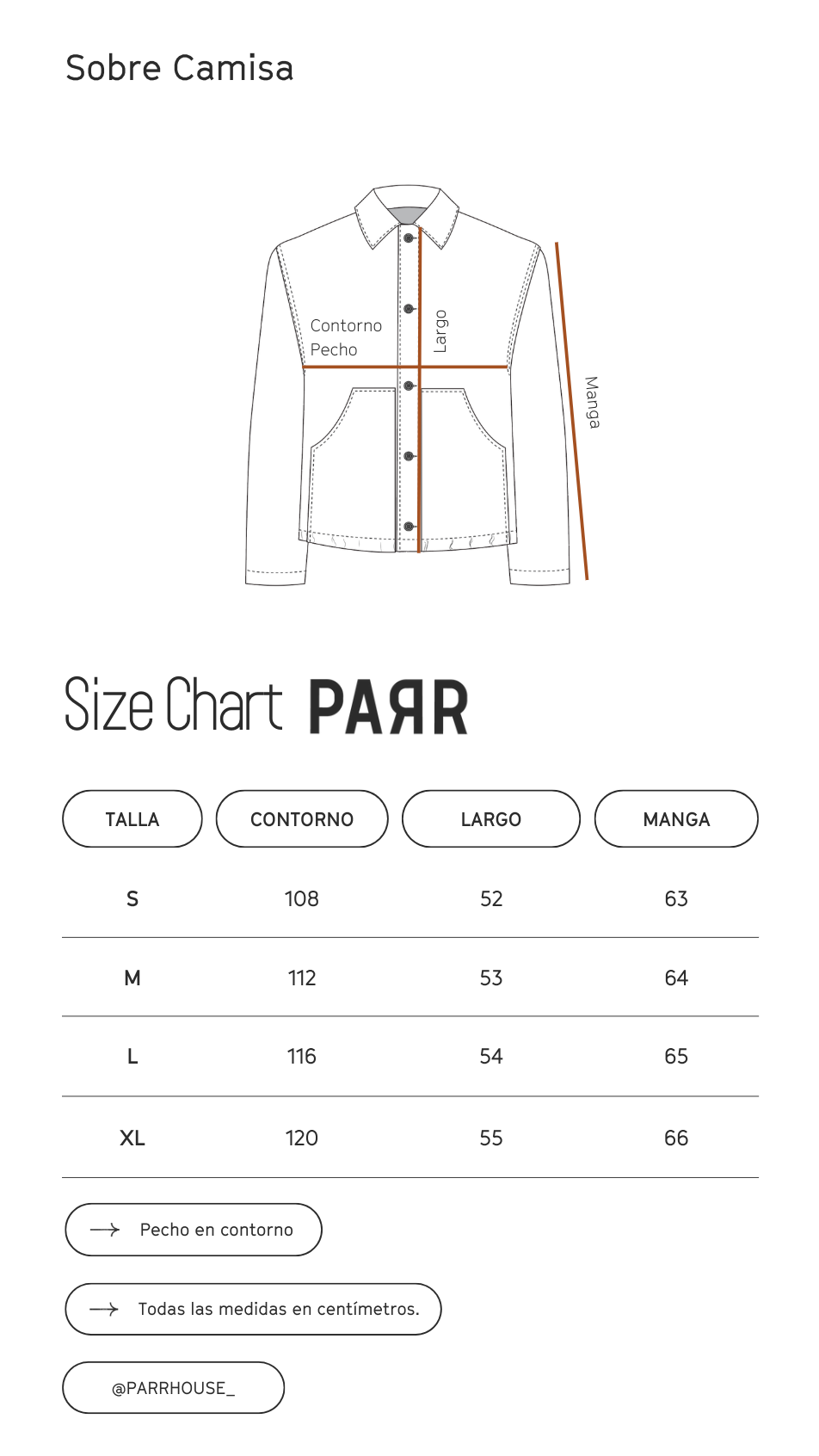 Sobre camisa con parche bordado en pecho izquierdo y estampado serigrafía en espalda.